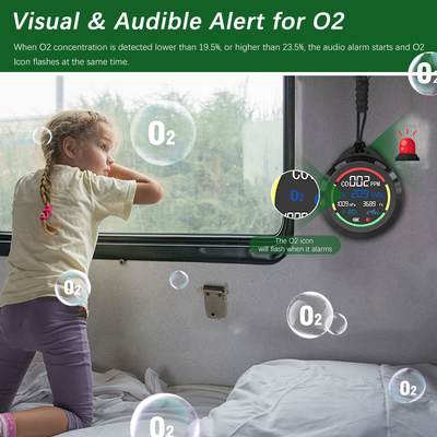 [6-в-1 и портативный дизайн] RV детектор окиси углерода определяет CO, O2, атмосферное давление, высоту, температуру, влажность в режиме реального времени.Можно легко положить в карман.Кроме того, он имеет 7,8 дюймовую веревку, может висеть и стоять.