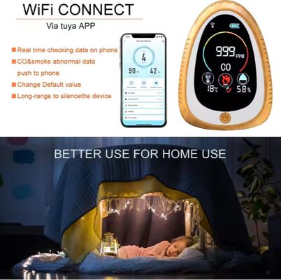 5. Чистый ЖК-дисплей:Укомплектованный ЖК-дисплеем, который поддерживает автоматическую регулировку яркости, что облегчает просмотр ночью без блеска. Он отображает в режиме реального времени концентрацию CO, температуру и влажность,сделать его легким для понимания для пожилых людей и детей.