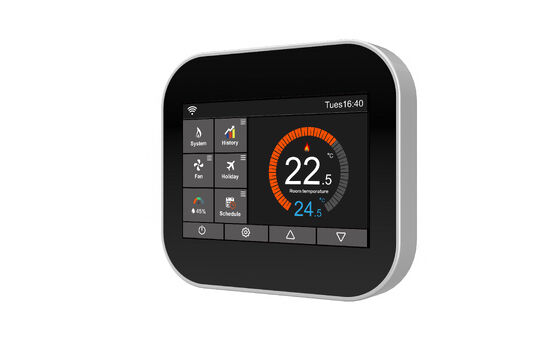 * 2/4 труб системы HVAC * Включение/выключение или 0-10В клапан для отопления и охлаждения. * Ручная или автоматическая замена * 7 дней, в будние дни / выходные, 24hours schedule * Four or six events per day * Auto-sync time and date * Automatically adjusts to daylight saving time * Defrost protection * Holiday mode * Multi-language(8 languages) * C/F temperature display * Touch screen lockout